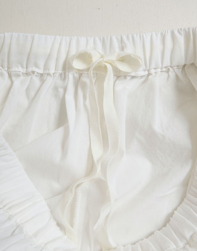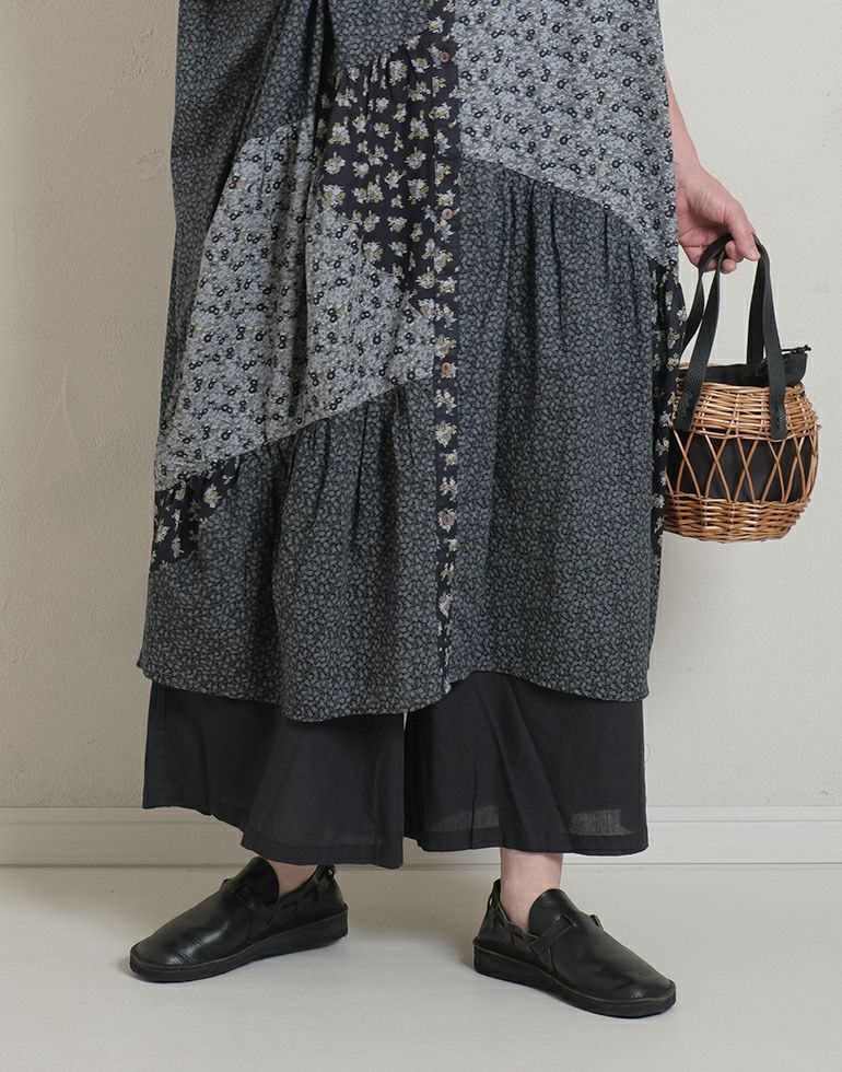 なめらかな手触りでさらりとやわらかいコットン素材。ワイドキュロットシルエットでワンピースのインに穿いていただくとボリューム感とこなれ感を演出してくれます。シンプルなデザインなので甘めが苦手な方にもおすすめの1枚です。