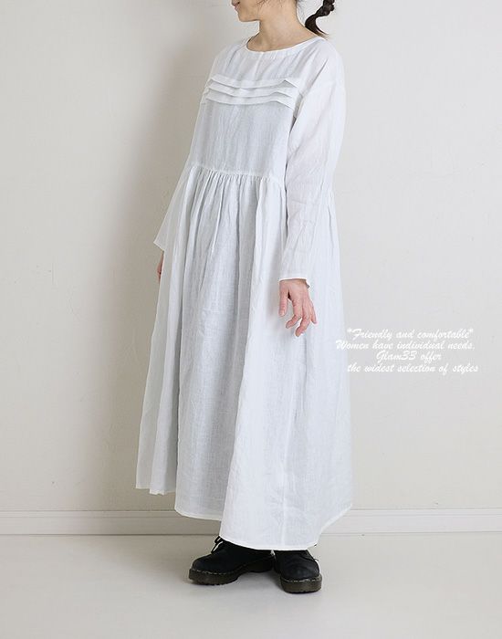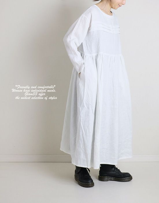 しなやかでやわらかい、上質なリネン素材。横タックの立体感がポイント。ウエストで切替ボリューム感のあるふんわりシルエットに。存在感でいて品のある雰囲気になっています。●素材 麻 100% ●モデル 身長 160cm●MADE IN CHINA