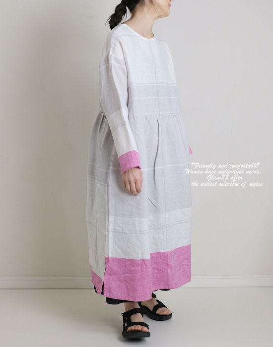 【セール】 襟ぐりギャザー袖シャーリングワン...