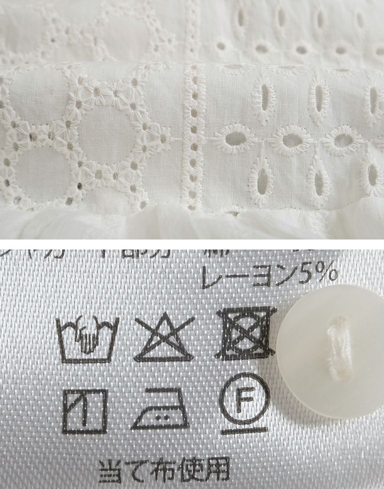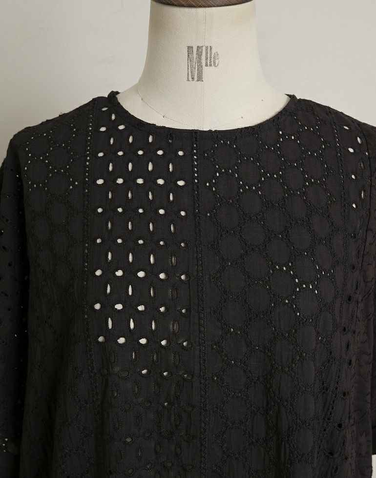 薄手でやわらかコットン素材。贅沢刺繍の柄違いをパッチワークし表情に変化を加えています。前後2Way仕様。1枚でフェミニンな着こなしが叶います。カットソーやニットのレイヤードで楽しめます。