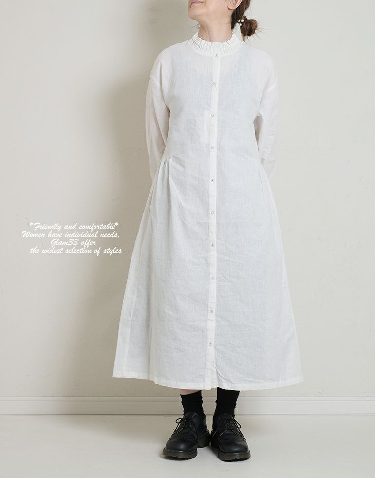 さらりとしたコットンリネン素材。ネックはゴムになっており脱ぎ着がしやすく、ゴムギャザーで自然なフリルが実現。ウエストサイドから後ろにかけてギャザーを寄せてふわり感を。ベストを重ねたり、ワンピースの重ねにも重宝します。コーデの幅が広がる1枚です。