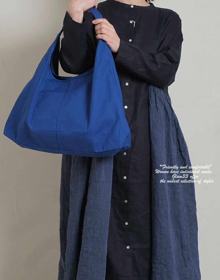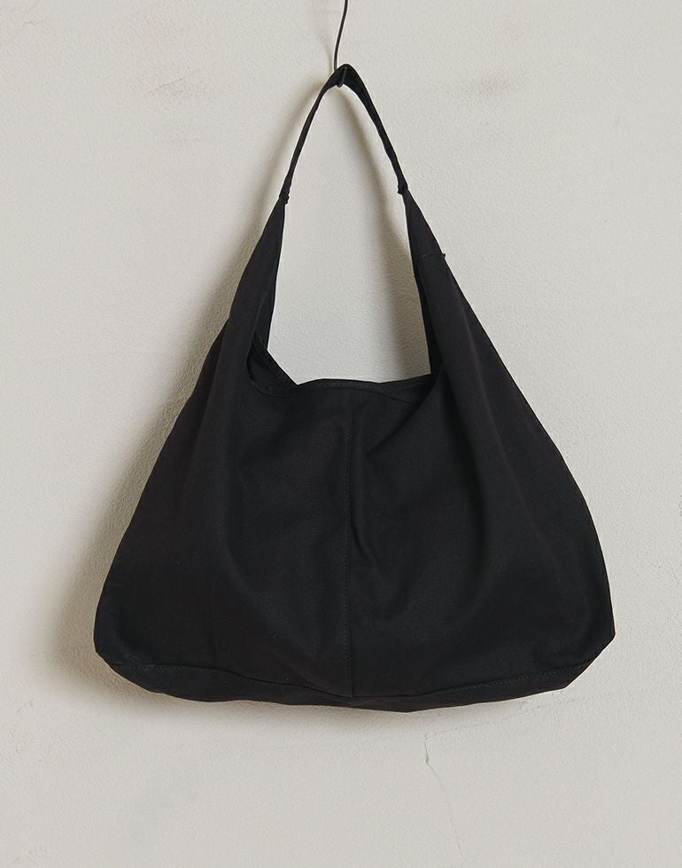 8ozの適度にハリのある軽いコットン素材。あずま袋のような三角形のシルエットがワンポイント!まちありでA4サイズは余裕ですっぽり収納可能。開閉はスナップボタン。内側にはスマホを横収納できるポケット付き。肩掛けもできて便利です。ビビットカラーはコーデのアクセントに、定番のブラックも安定。