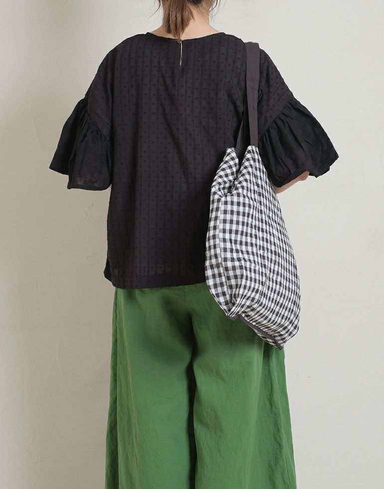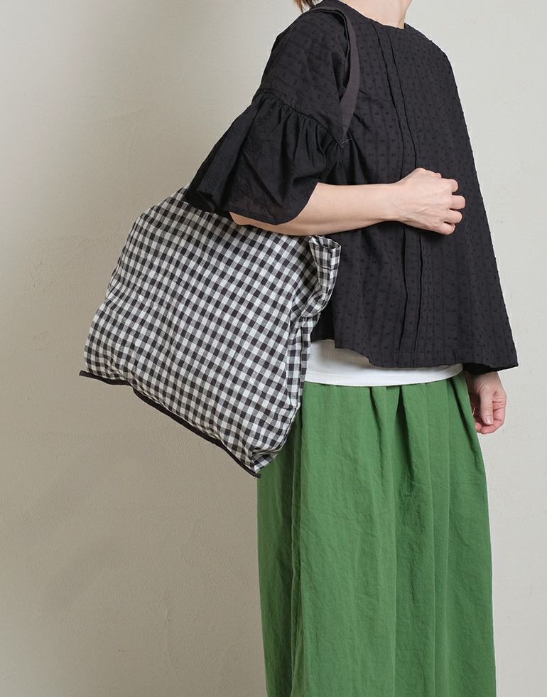 薄手のコットンリネン素材。コンパクトに折りたためてバッグの中に、ぽんぽんっと気兼ねなく放り込むことができます。どこへでも持ち歩けるカジュアルさながら、おしゃれ感をさりげなく漂わせ普段使いにとても便利なバッグです。軽くてもしっかりまちもあり収納力もあり。