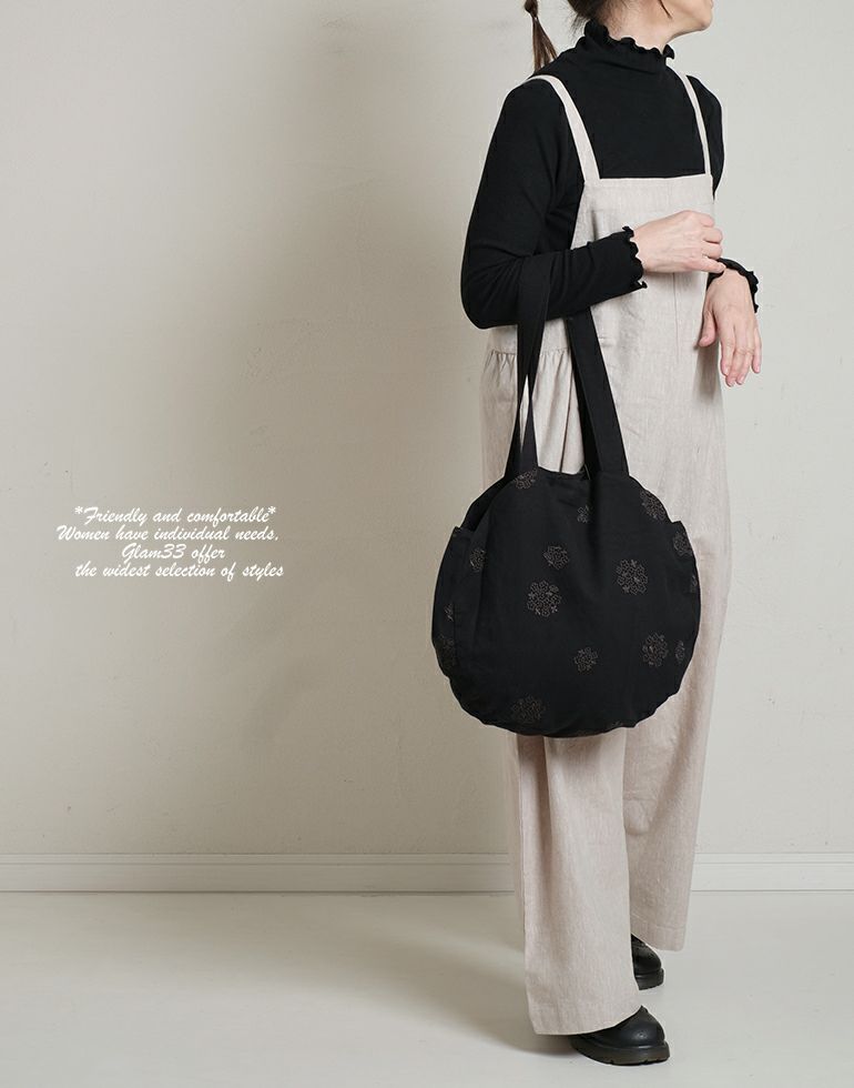 起毛のあたたかみのある素材。花モチーフ刺繍のナチュラルな雰囲気◎トートバッグ、肩掛けもOK!裏地付き、内ポケットあり。開閉はスナップボタンとなります。