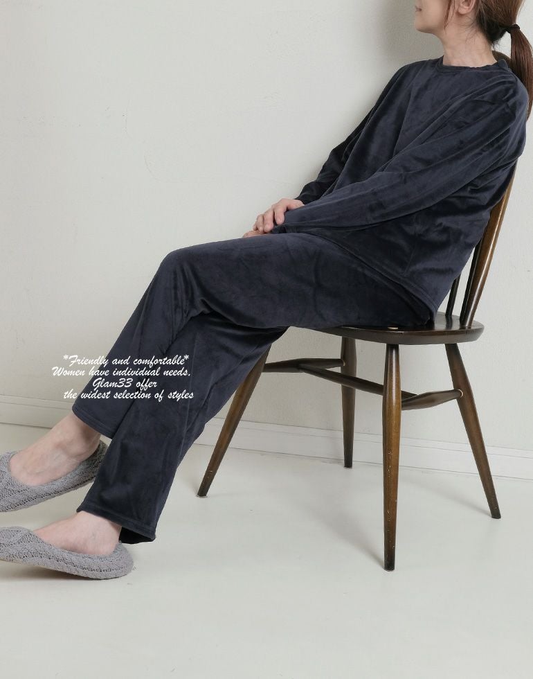 肌触り良くやわらかでぬくもりのあるベロア風素材。シンプルなデザインも◎おうちでのリラックスタイムにおすすめです。 ●素材 ポリエステル 95% ポリウレタン 5%