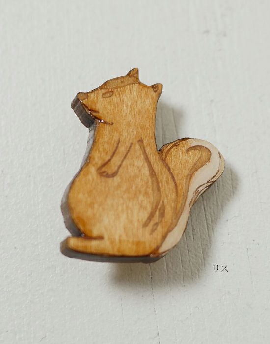 Kanmi. カンミ sp18-75 クリアウッド アニマル ブローチ 動物ブローチ 猫キャット リス ハリネズミ ペリカン
