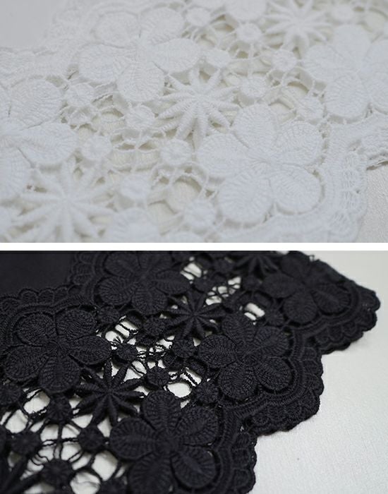 豪華なお花レースがプラスする事で華やかな印象に変化させてくれます。