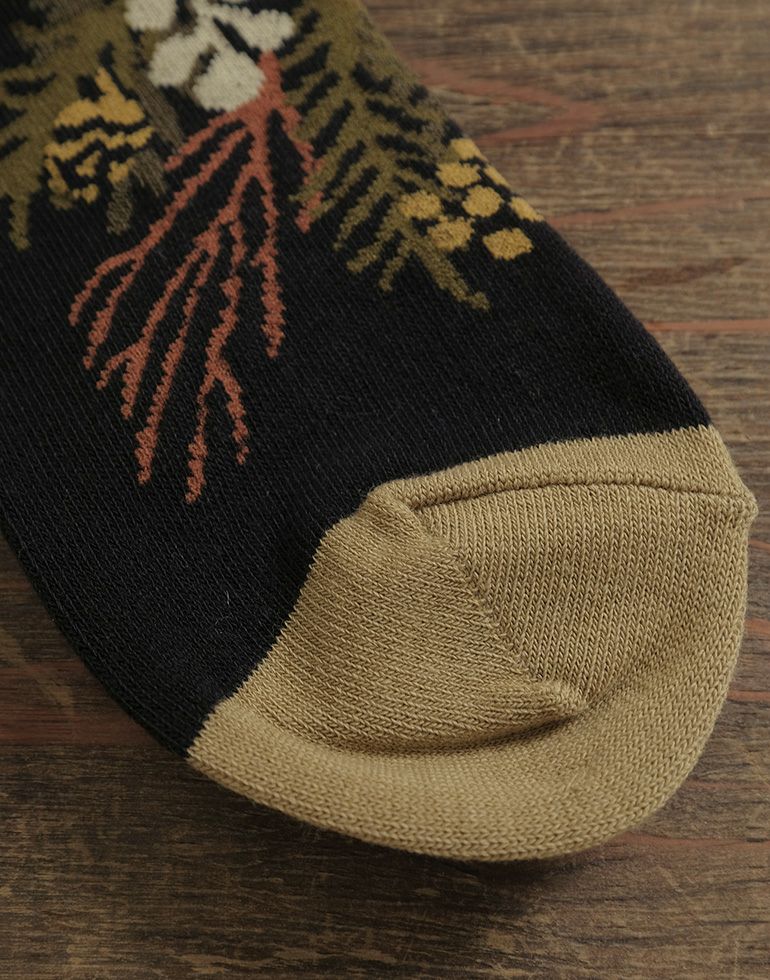 花柄や植物をモチーフとしたデザインバリエーションが豊富で、日常のコーディネートに華やかさをプラス。綿素材は夏は吸湿性が高く、冬は本性に優れあたたか。軽くて肌触りがよくオールシーズン活躍してくれます。印象的でアクセントにおすすめです。ギフトにもぴったりな「ボタニカソックス」は、特別な人への贈り物や自分へのご褒美として最適です。 日本製ならではの品質で、足元から彩りと心地よさをお届けします。