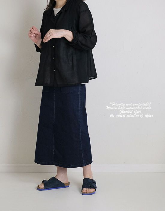 程よい透け感が涼し気なボイルコットン。軽やかで汗ばむ季節にさらりと肌離れの良い素材感が夏の羽織にも最適です。フロント部分に深めのタックが入っており、体のラインをきれいに見せてくれます。後ろはヨーク下にたっぷりとギャザーが入っており、上品で美しいシルエットに。エアコンの冷え防止、日除け防止にとコンパクトに畳めて、かばんに収納しやすくて便利です。●素材 綿 100% ●モデル 身長 160cm●MADE IN CHINA