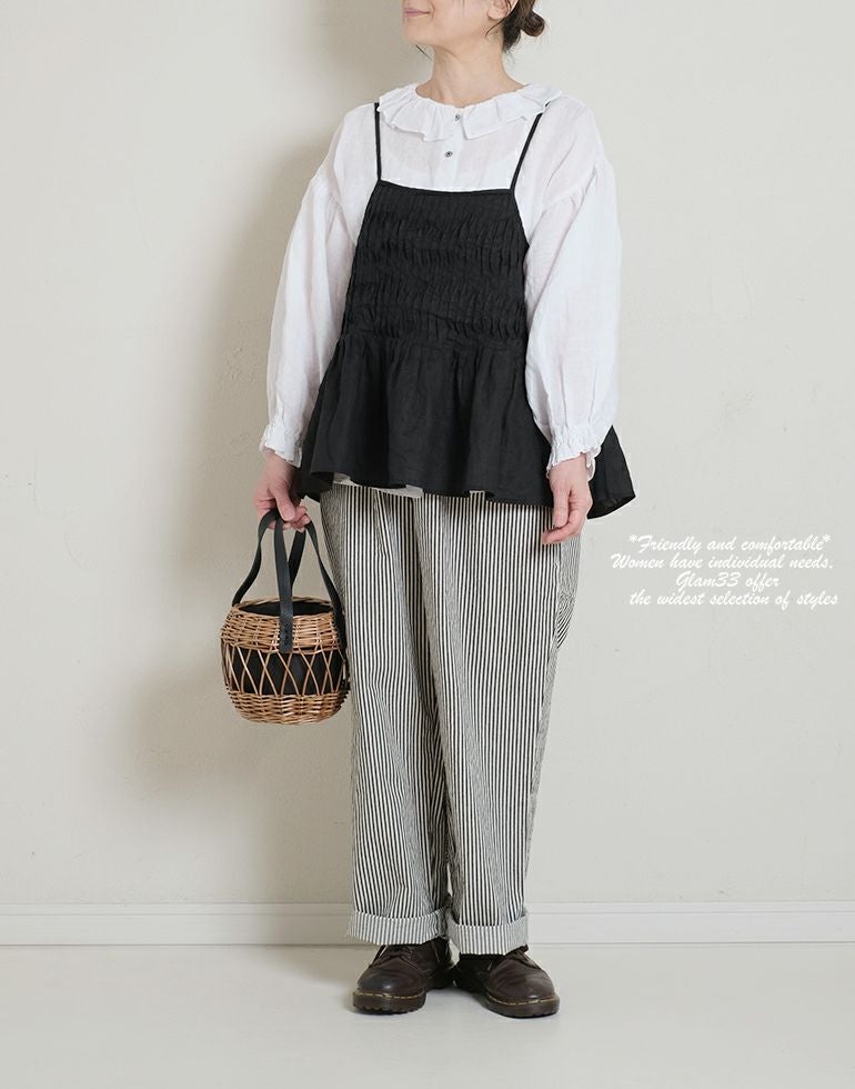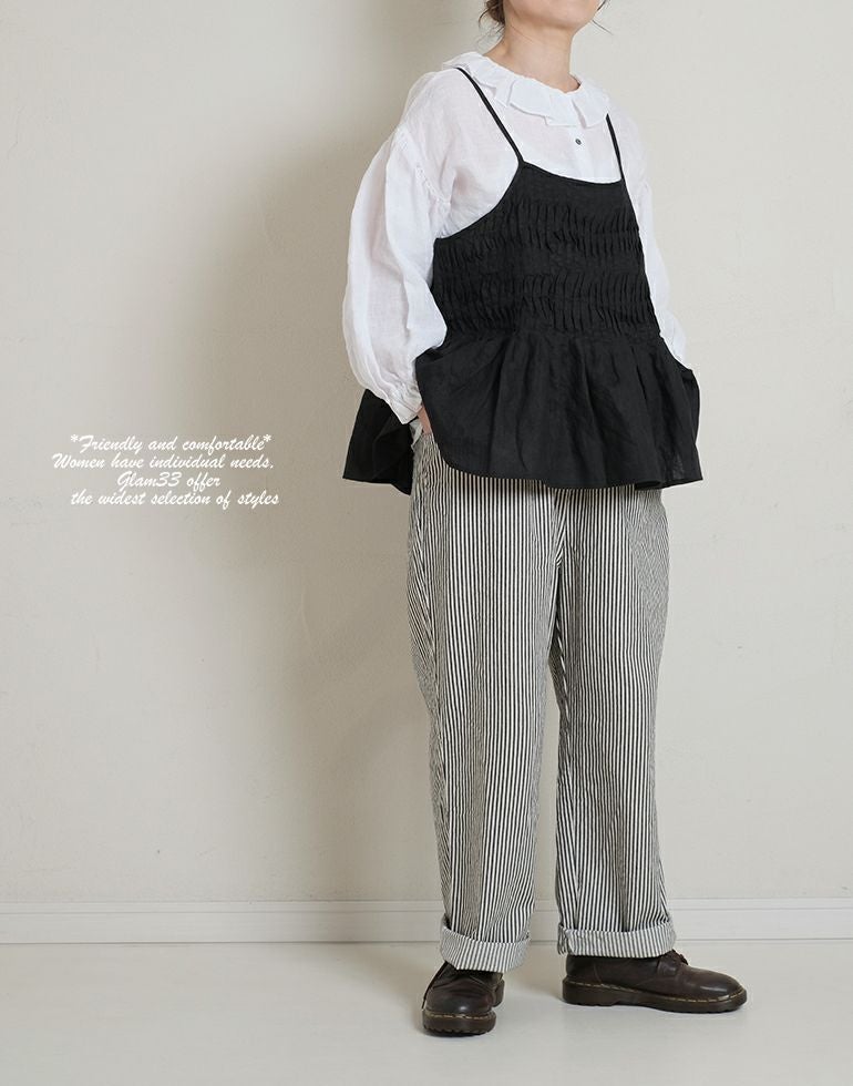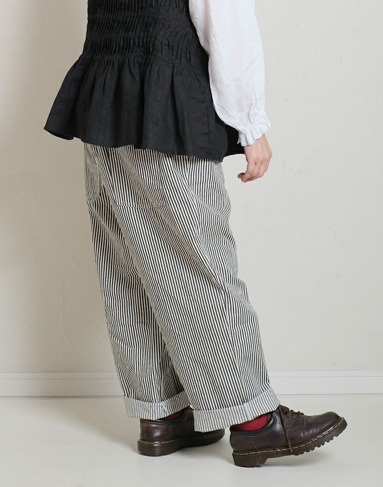 適度な厚みで軽さのある綿素材。股上深くリラックスしたワイドシルエットのパンツ。ボリュームあるシルエットが、コンパクトなトップスなどにも合わせやすく、存在感のある主役級のパンツになってくれます。ヒップ周りがゆったりとしており、ラフでこなれ感あるスタイルを演出。程よいワイド感がメンズライクにも女性らしくも着こなせる万能シルエットです。ロールアップすることでまた違った印象を見せてくれます。