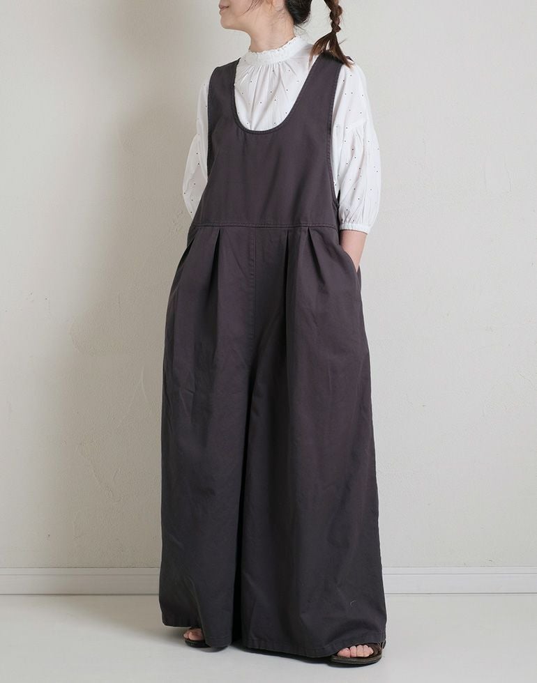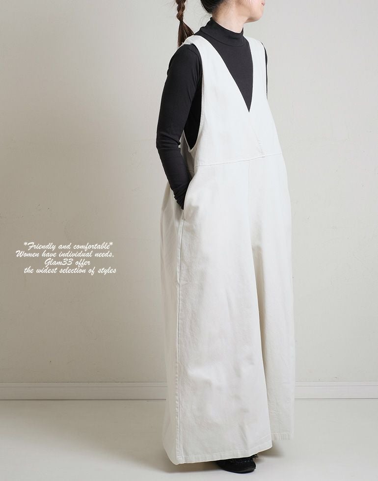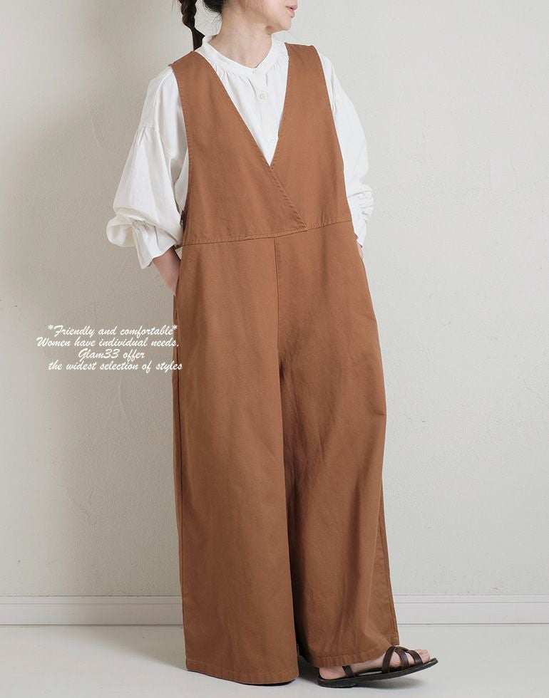 やわらかく適度なこしのあるツイル素材。カシュクールとUネックの2Way仕様。ふわりと広がるワイドシルエットパンツが女性らしい大人の雰囲気に。ウエストもヒップ周りもゆったりしており、体のシルエットを拾わずリラックスな履き心地です。ウエスト切替でタックありとなしで印象の変化を楽しめます。