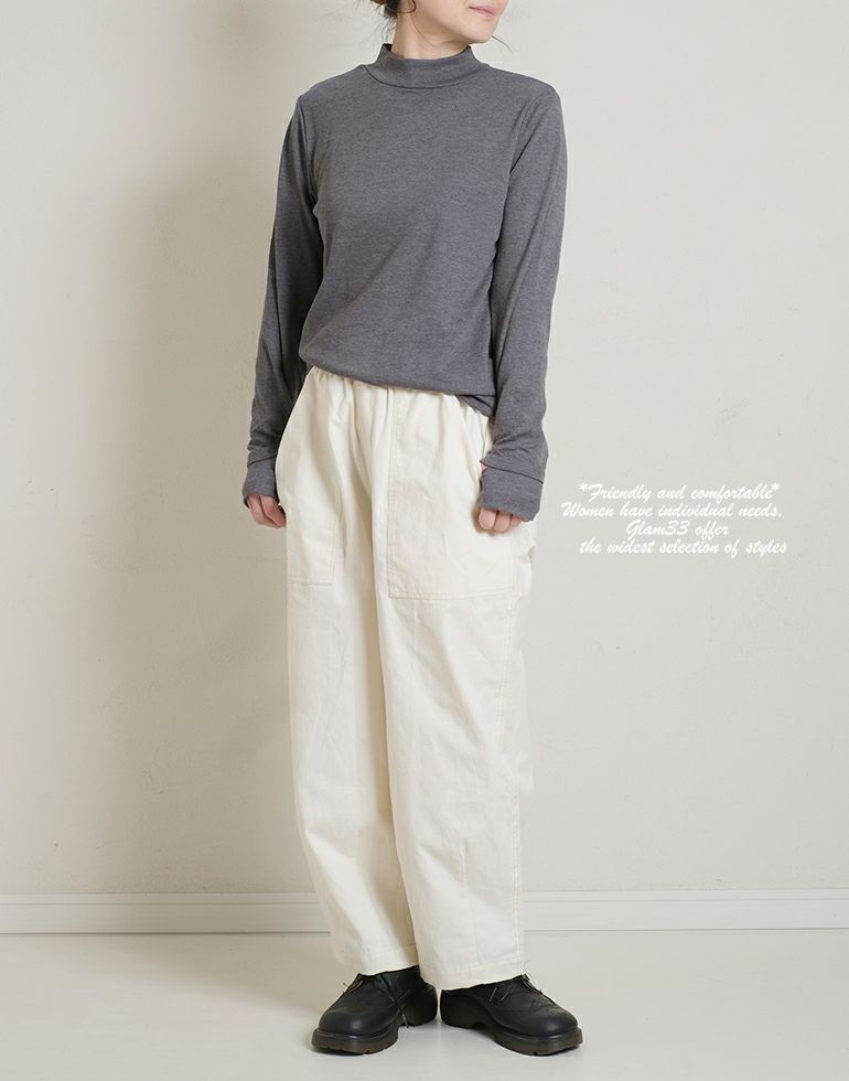 ふわっとやわらかい着心地で肌にやさしいなめらかスムース生地。程よいサイズ感でインナーとして1枚着としても重宝するアイテムです。指穴デザインがポイントとなります。