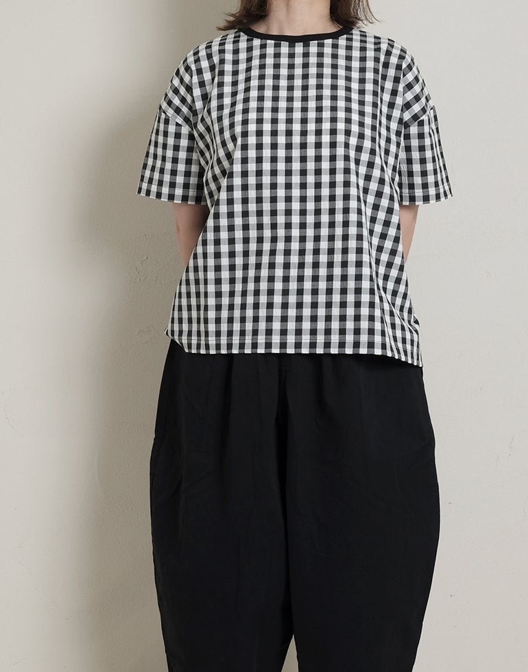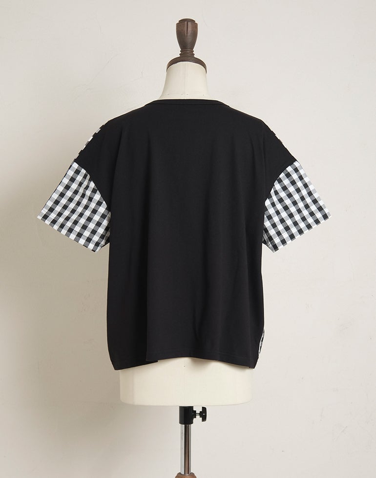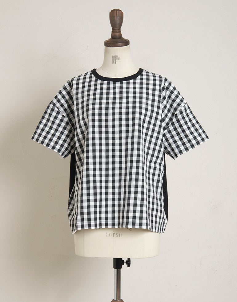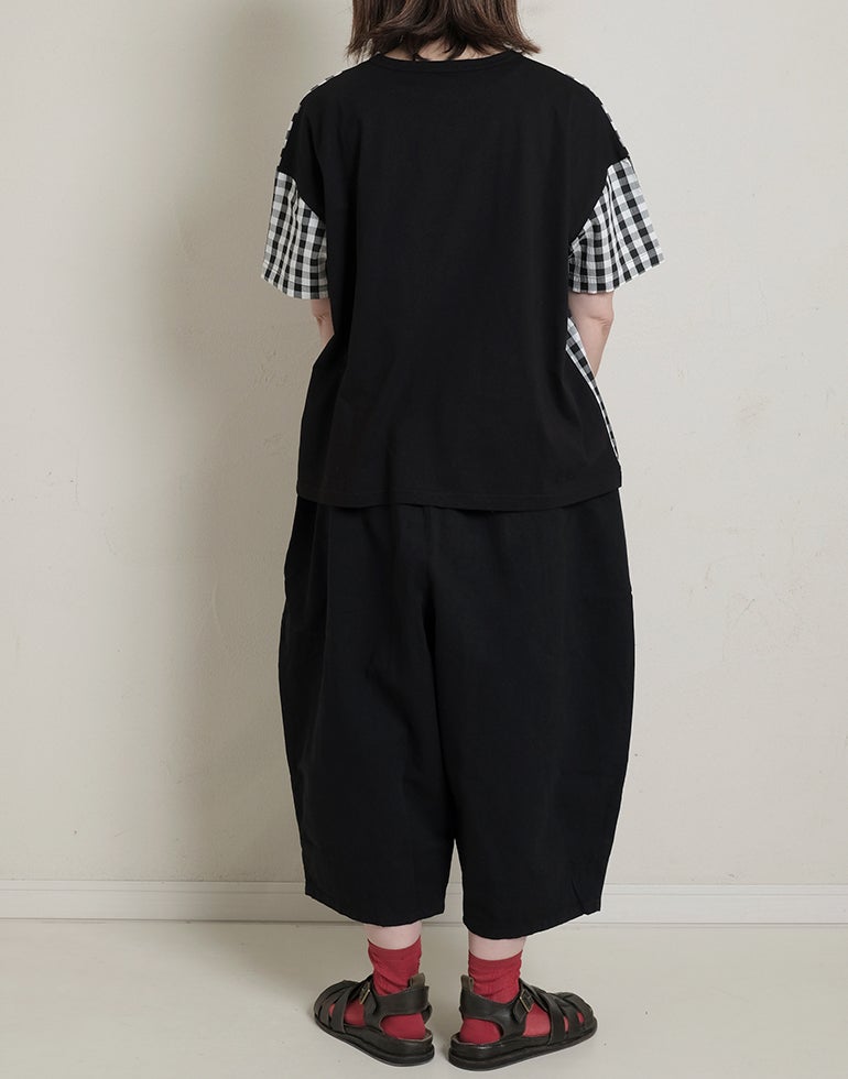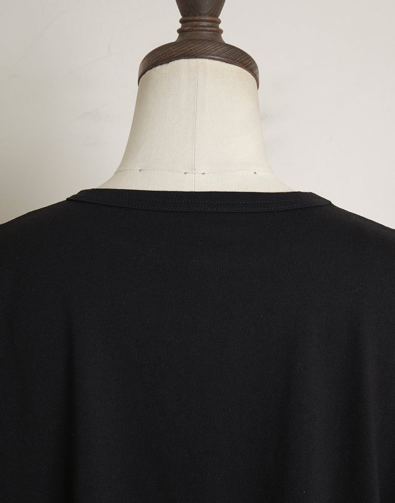 フロントはシャカっとした肌離れの良い綿ポリ素材にバックはコットン天竺。前後異素材切替で装いに立体感のある豊かな表情をプラスします。さらりと着るだけで、さりげない個性が光る1枚です。