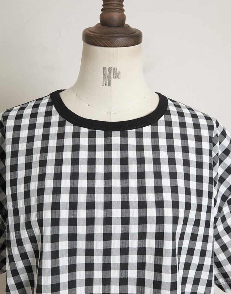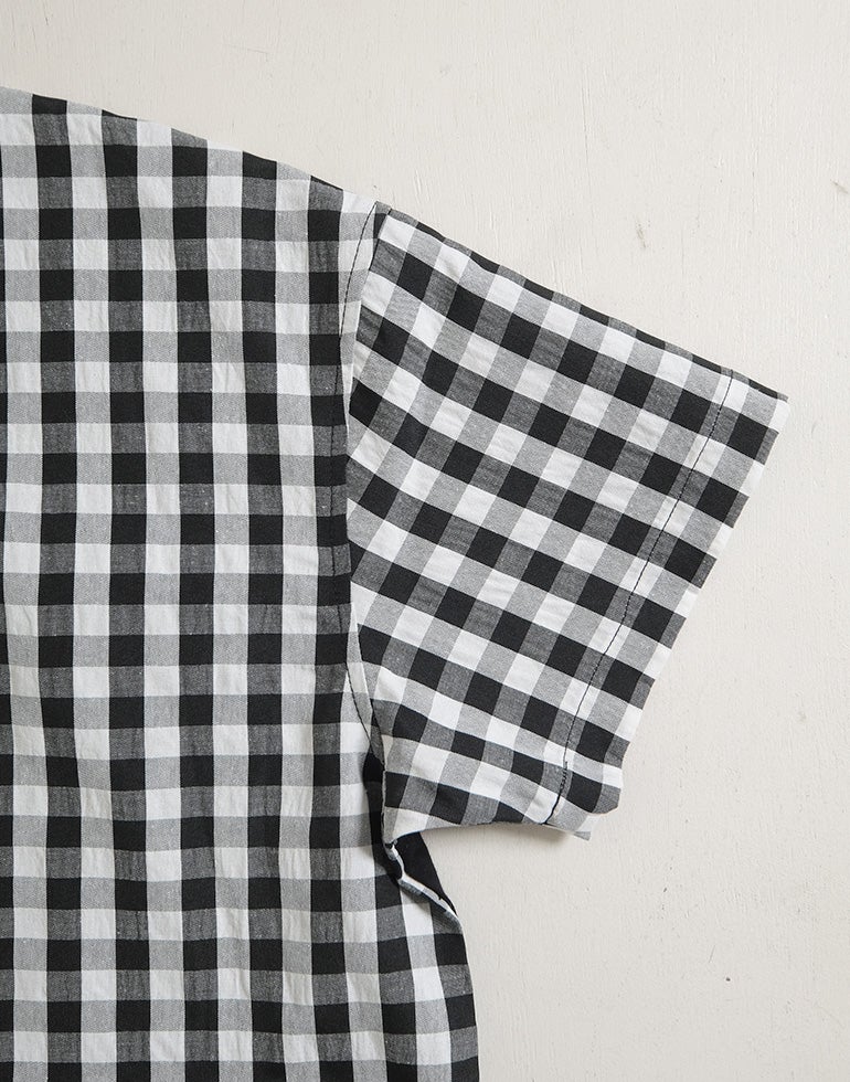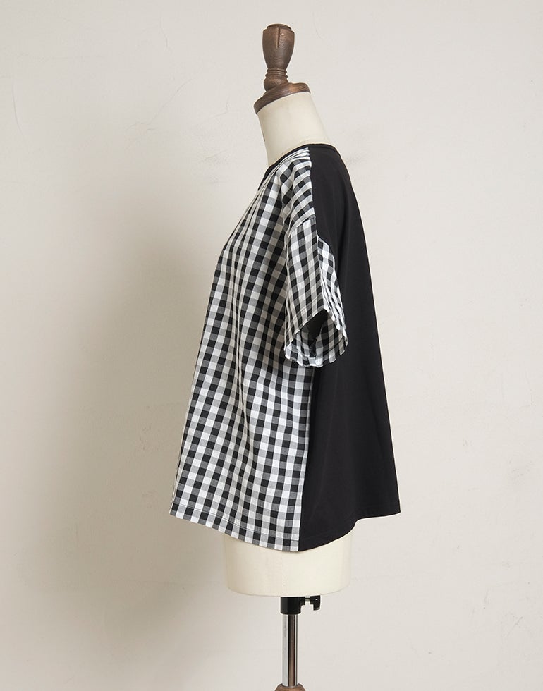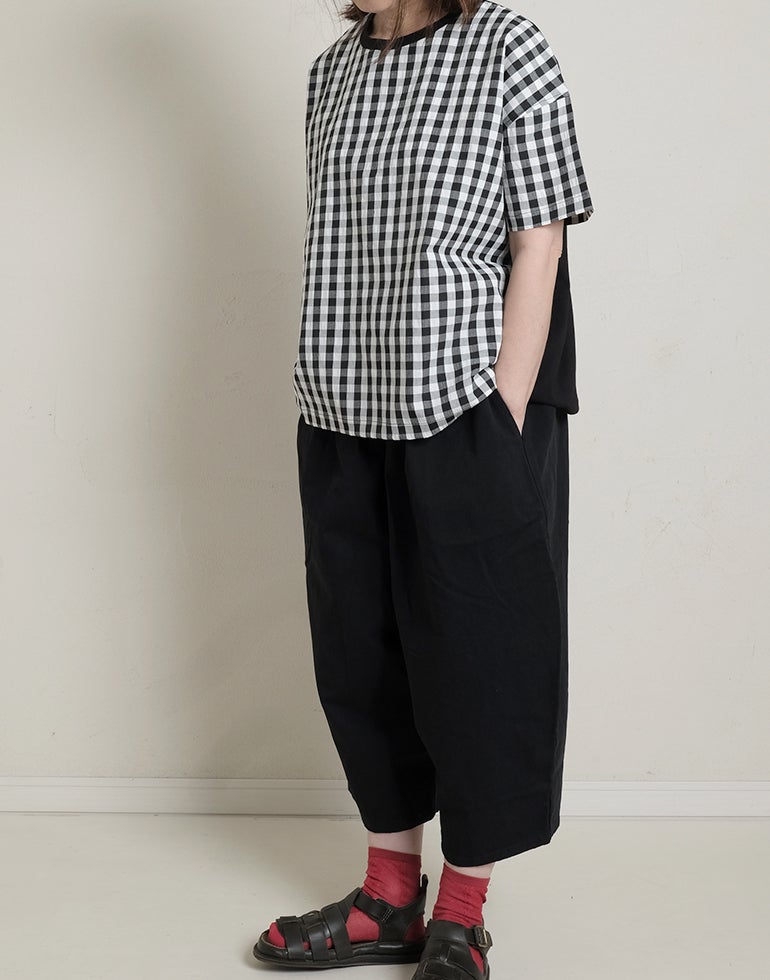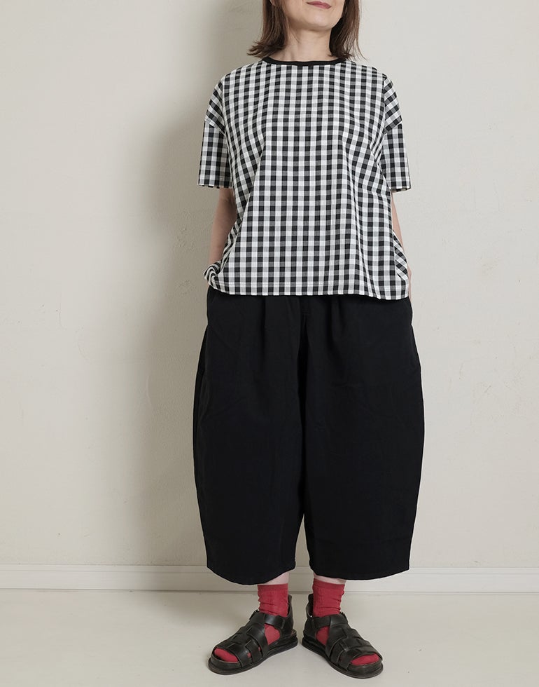 フロントはシャカっとした肌離れの良い綿ポリ素材にバックはコットン天竺。前後異素材切替で装いに立体感のある豊かな表情をプラスします。さらりと着るだけで、さりげない個性が光る1枚です。