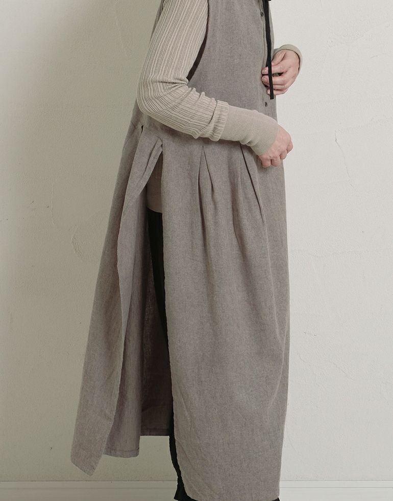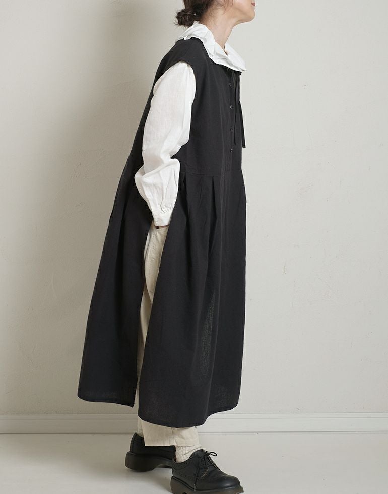 上質な風合いのリネンとやわらかい風合いのいいコットン素材。肩に少しかかるデザインが華奢な印象に。前後どちらも着用可能。リボンで大人可愛い雰囲気に仕上げてくれます。サイドが開いており、レイヤードスタイルが楽しめます。