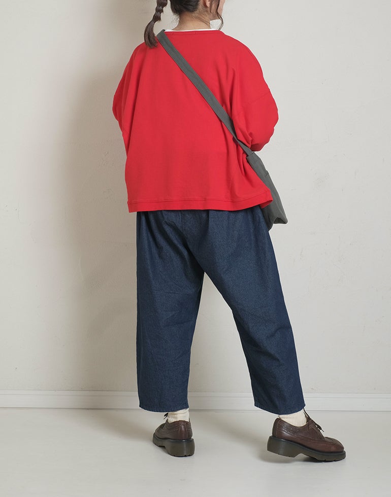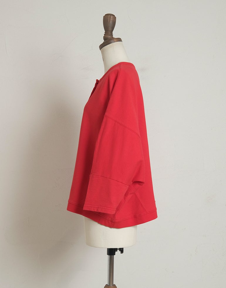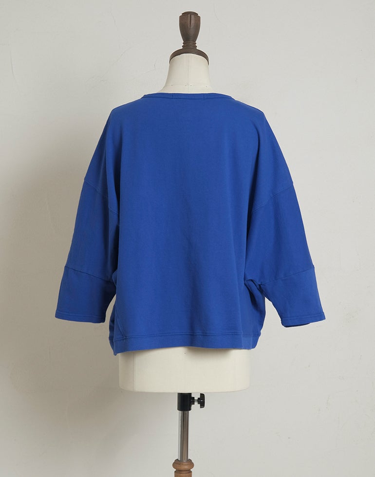 やわらかくソフトな肌触りのコットン素材。ドルマンスリーブにゆったりしたサイズで重ね着しやすくなっています。春先から初夏にかけてのレイヤードにおすすめの1枚です。コットンなので気軽にお洗濯もでき重宝してくれます。