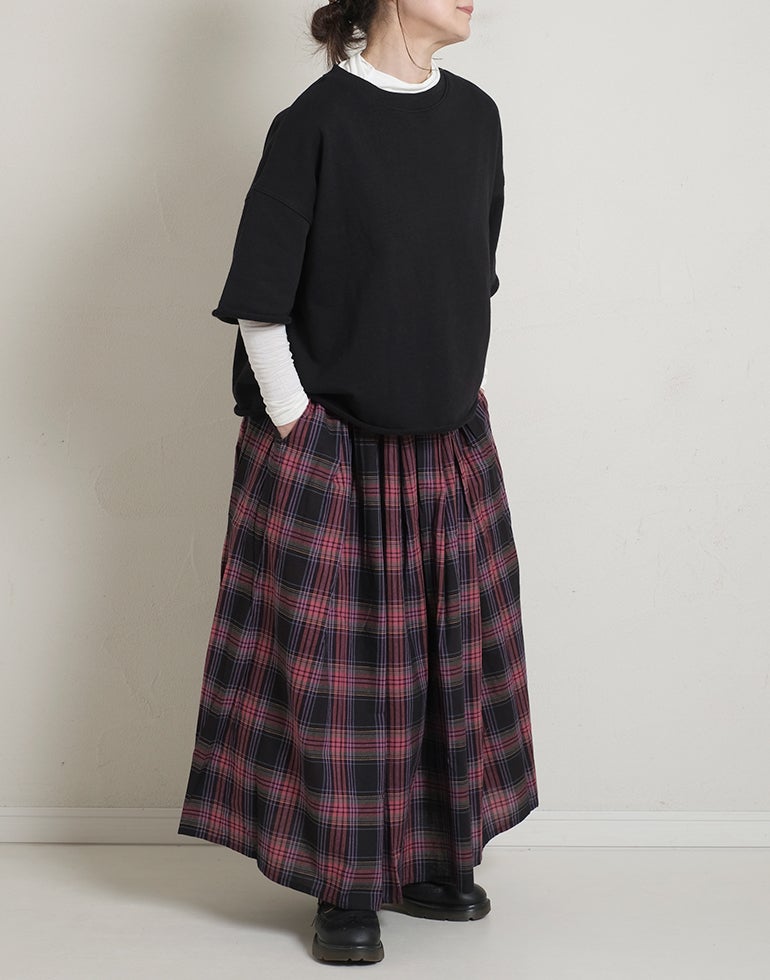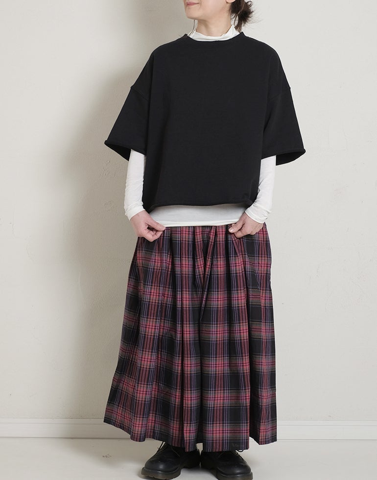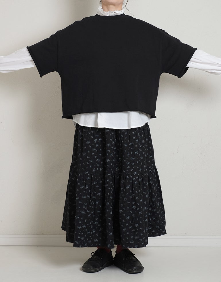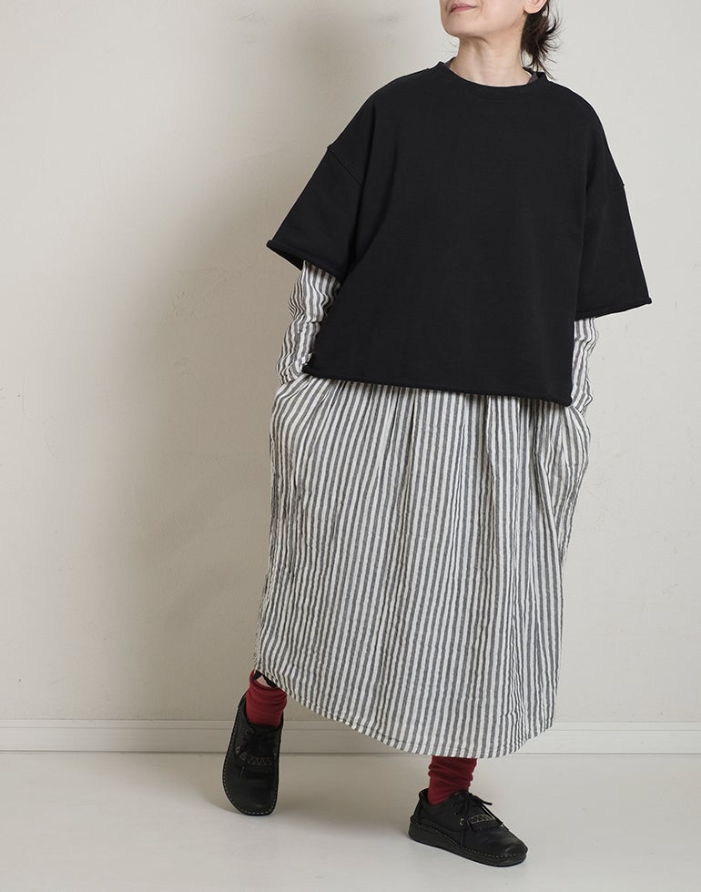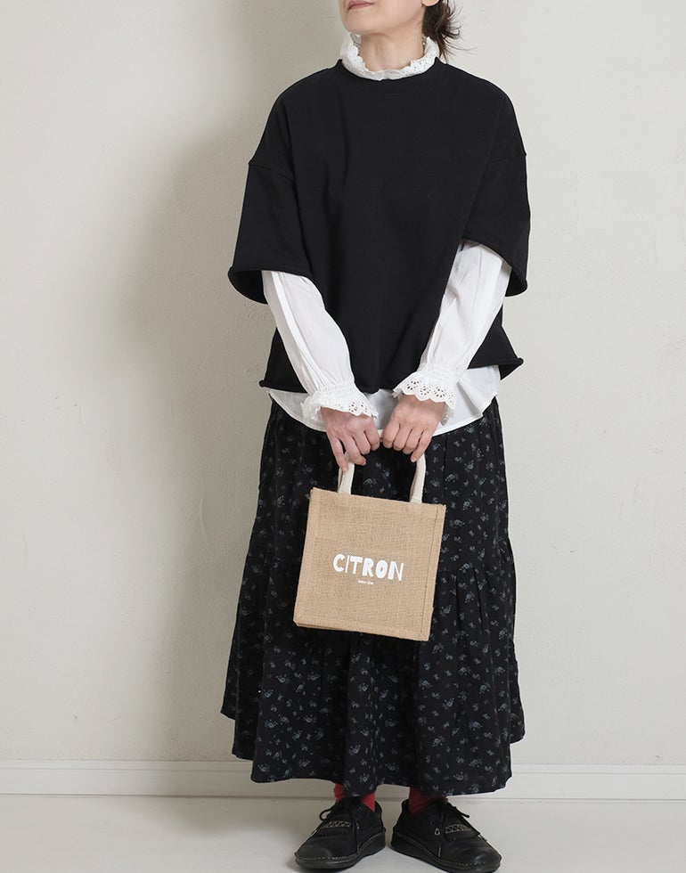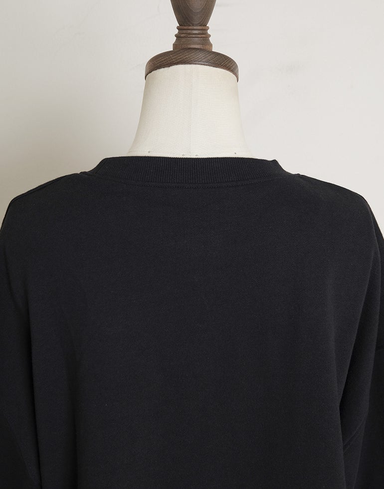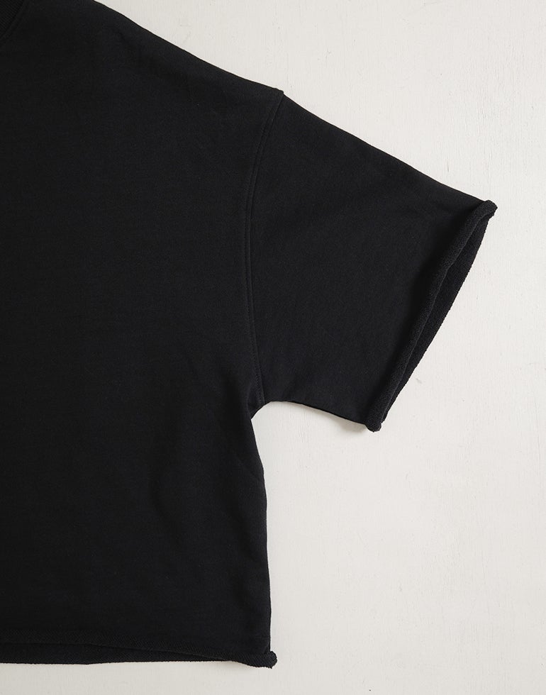 柔らかく滑らかな肌触りで裏は細かいループ状になっており、通気性、吸湿性に優れているミニ裏毛素材。Tシャツ以上・スウェット未満の肉感で春はベストとして、夏はタンクに重ねて1枚で。ワイドな身幅は重ね着しやすく、インナーをチェンジすることで長く着用可能。ドルマンスリーブシルエットが肩のラインを包み込んでくれ華奢な印象に。袖口、裾クルリンとなっている点もポイントです。