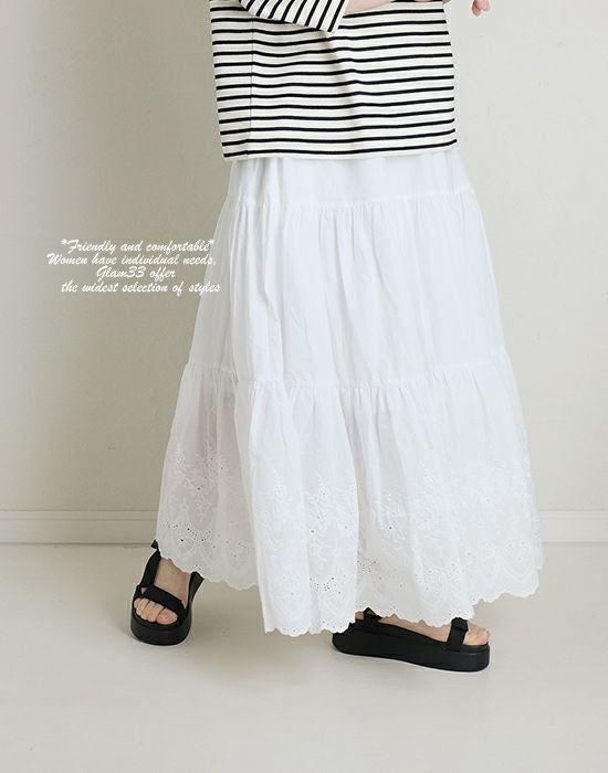 他の画像を見る 【セール】AFFINITE&BELL アフィニテアンドベル スカラップ刺繍ティアードロングスカート/ペチスカート 送料無料(沖縄・離島を除く) SALE 定価 ¥ 9,460 のところ 価格 ¥ 6,622 税込 カートに入れる お気に入りに登録する