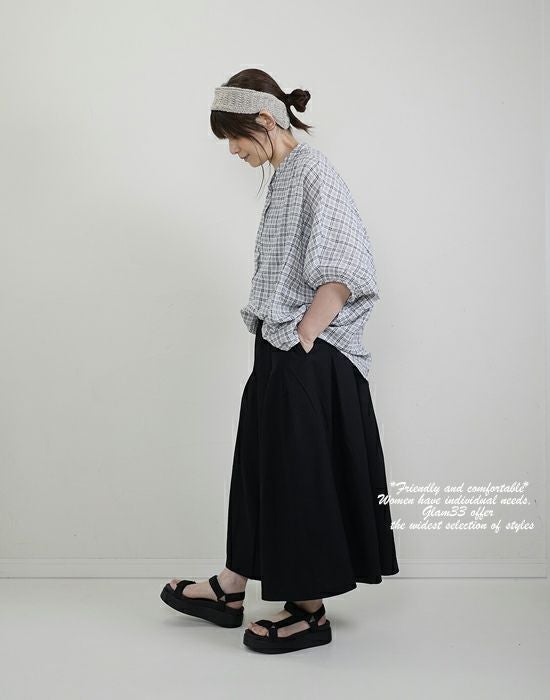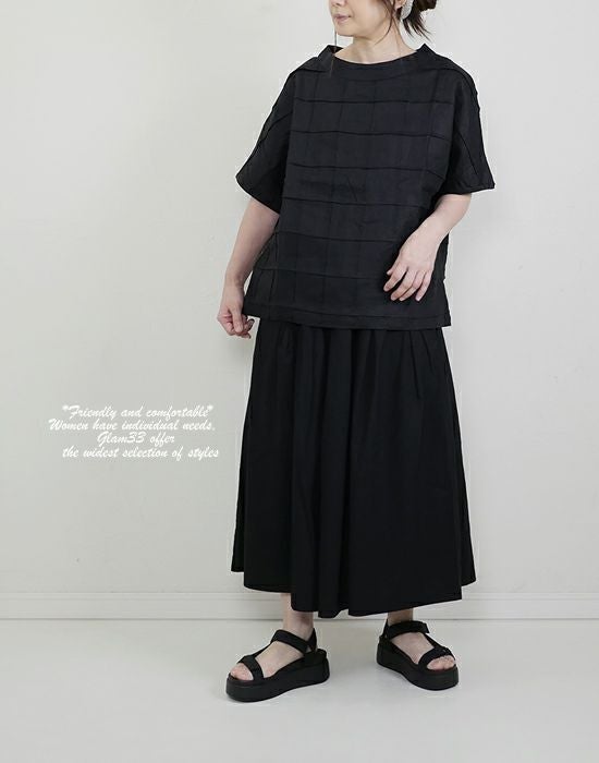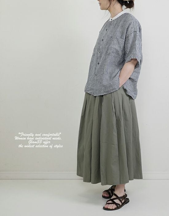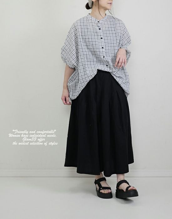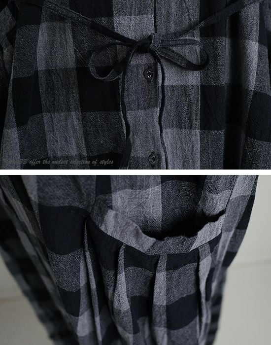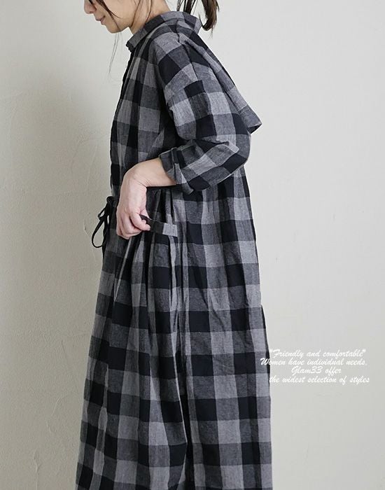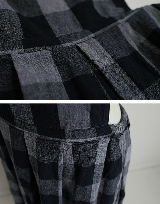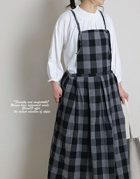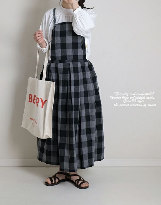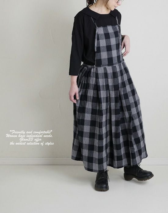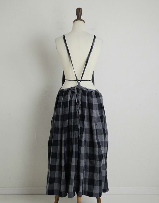 LINTY リンティ  019525 綿麻チェックエプロンタックワンピース  サロペットワンピース