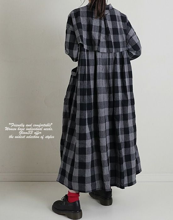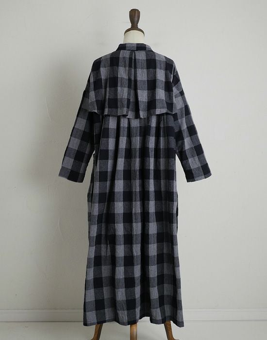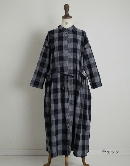 【セール】 LINTY リンティ  019523-ch コットンリネンチェックバックプリーツコートワンピース