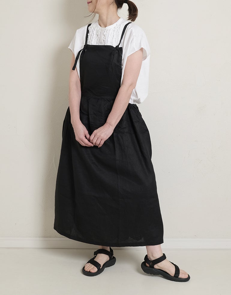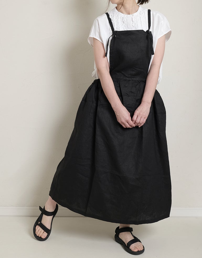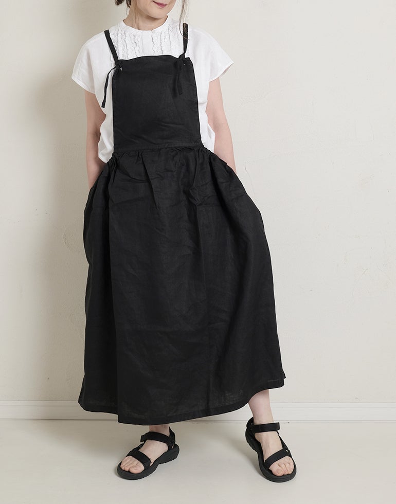 LINTY リンティ  リネン麻エプロンタックワンピース  729501