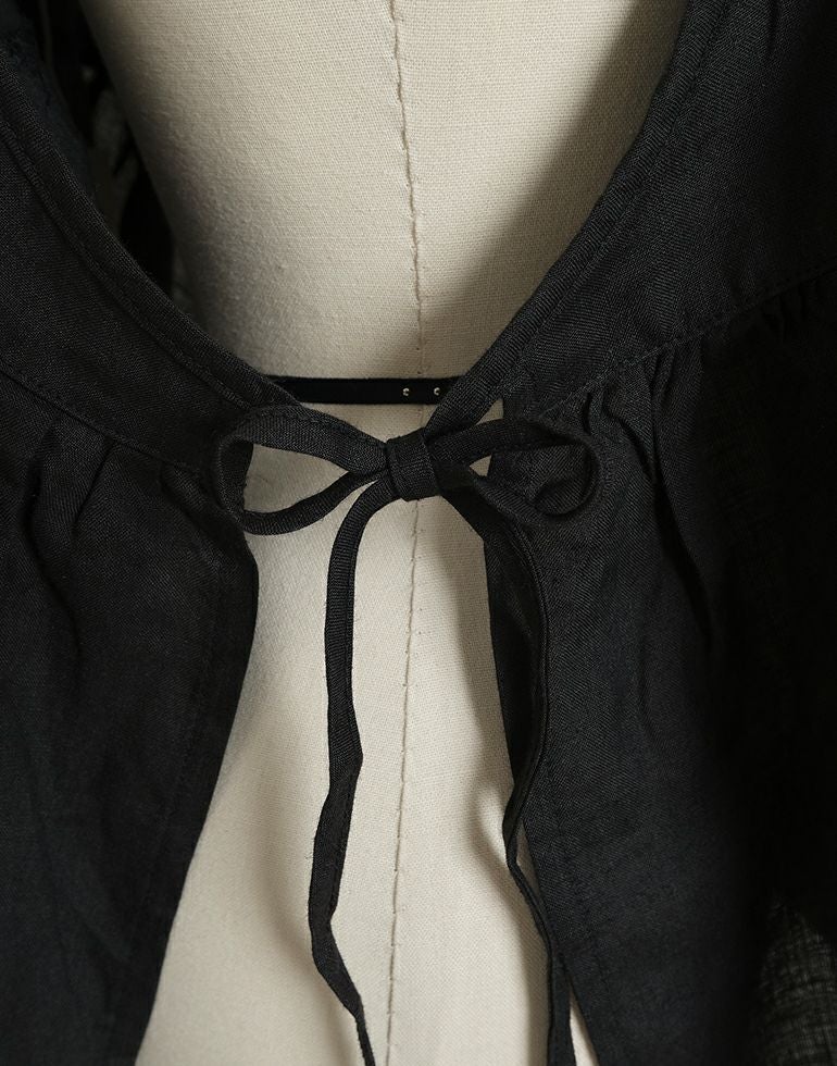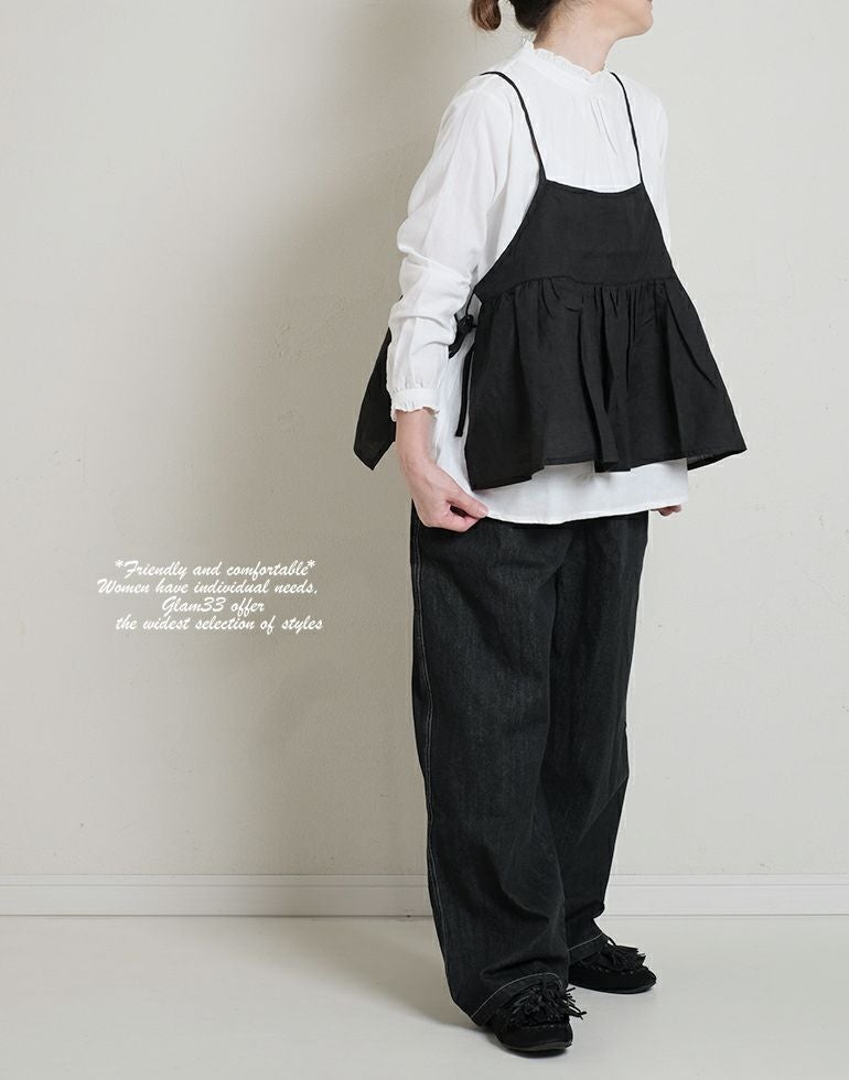シャリっと感と光沢のあるさらりとしたリネン素材。サイド開きにリボンが施されてあり、ワイドやボリュームのあるインナーとの重ねも着用可能です。レイヤードするだけで抜け感のあるこなれた