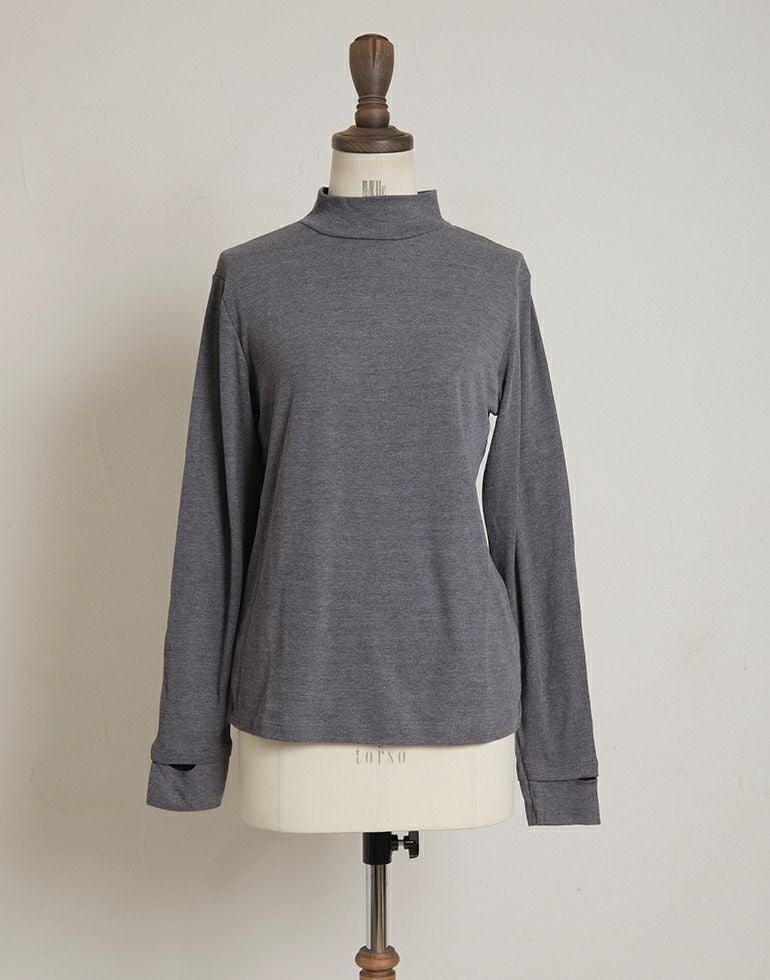 ふわっとやわらかい着心地で肌にやさしいなめらかスムース生地。程よいサイズ感でインナーとして1枚着としても重宝するアイテムです。指穴デザインがポイントとなります。