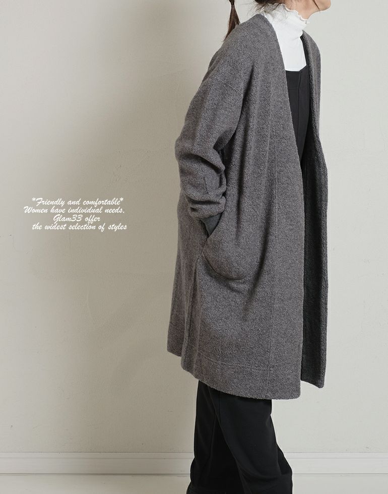 くるくるとした短い毛足の表面感が可愛く見た目もあたたかな雰囲気のウール混パイル素材。軽い着心地でさっと羽織ったりするのに便利な1枚です。Vネックでニットやカットソーのレイヤードも楽しめ、すっきりした印象にしてくれます。サイドの丸いポケットもワンポイント!袖口はリブ仕立で寒い時期の風侵入もしっかり防いでくれます。