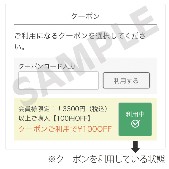 クーポンをご利用される場合は「利用中」という緑色のボタン表示をご確認ください。